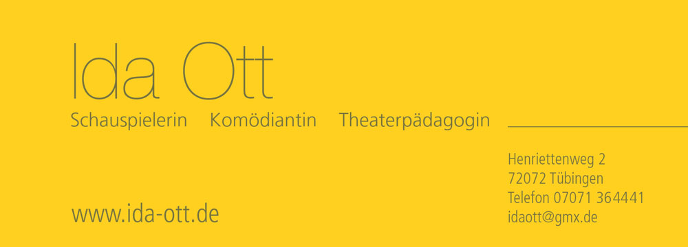 Visitenkarten im Lesezeichenformat und Website für die Schauspielerin Ida Ott.