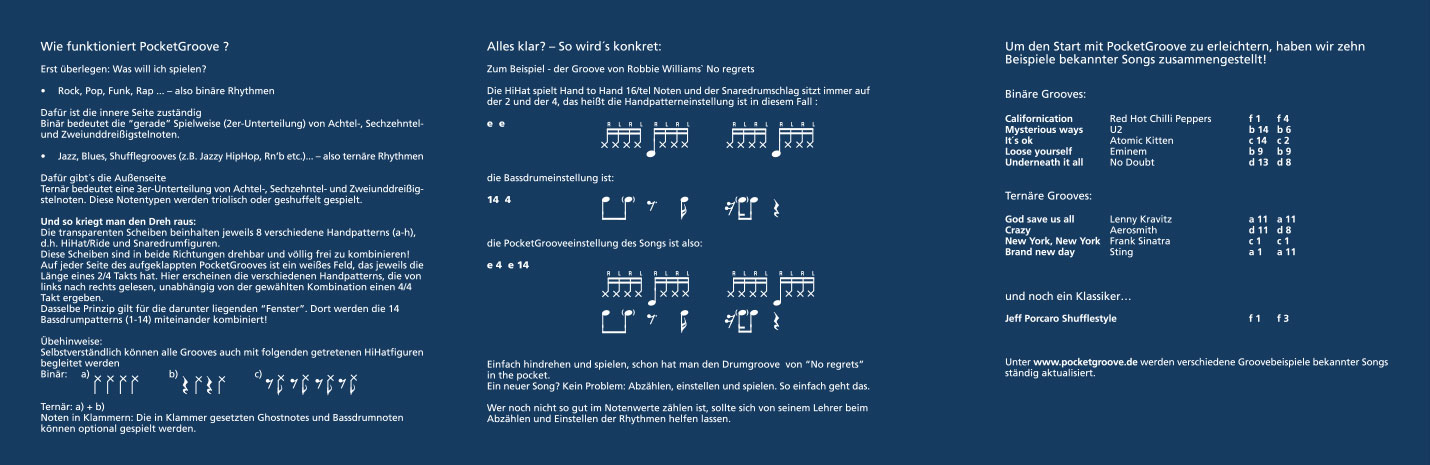 Im Handumdrehen über 2500 Grooves "in the pocket". Session- und Übungstrainer für Schlagzeuger, schneller Grooveguide für Bands, Arrangeure und Songwriter.