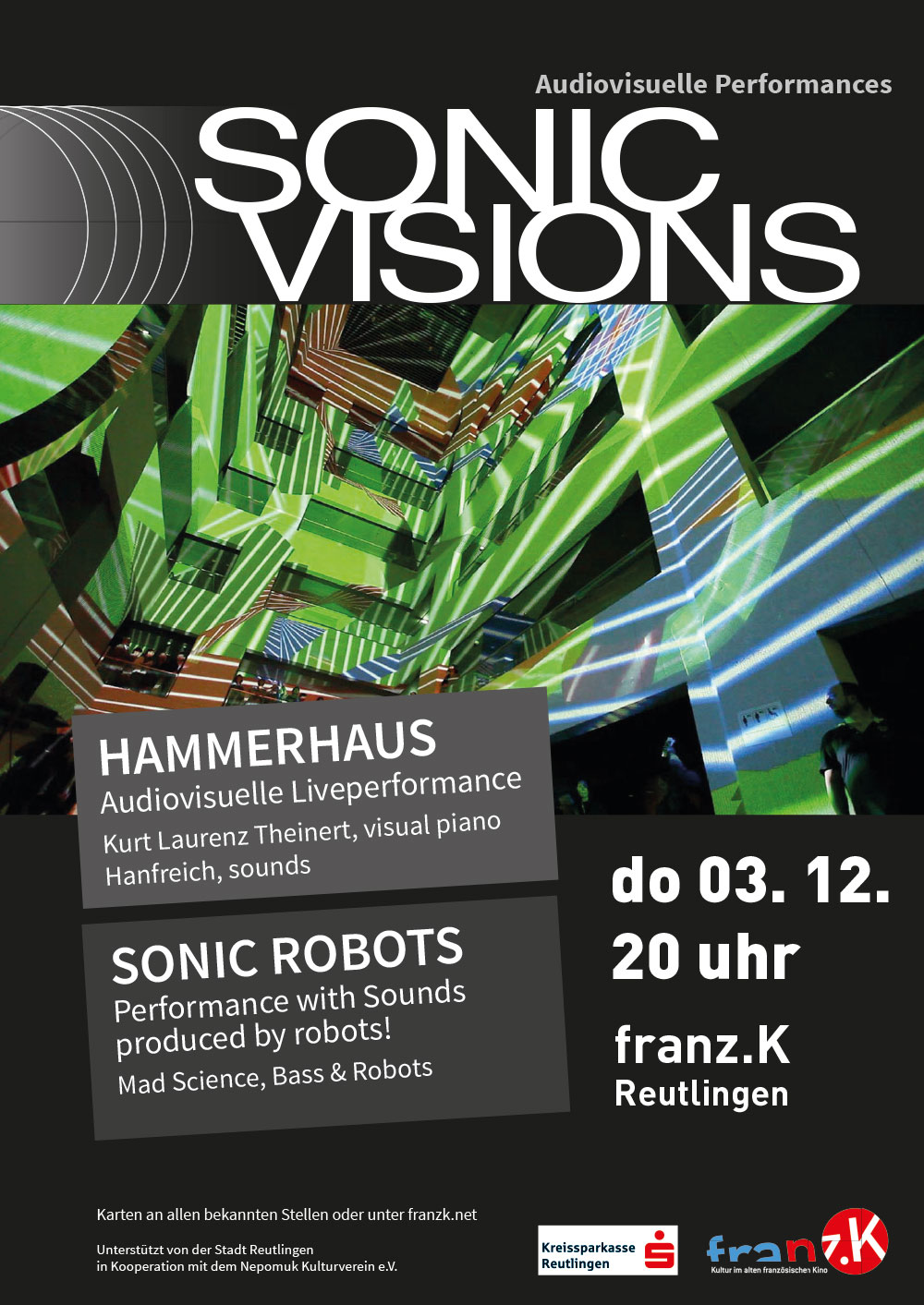 die Veranstaltungsreihe SONIC VISIONS ist ein einzigartiges Projekt des Kulturzentrums Franz.K in Reutlingen. Unter Mitwirkung der Württembergischen Philharmonie Reutlingen finden dort seit 2007 Uraufführungen internationaler Komponisten und audio-visueller Performance-Künstler statt.