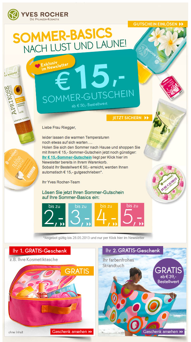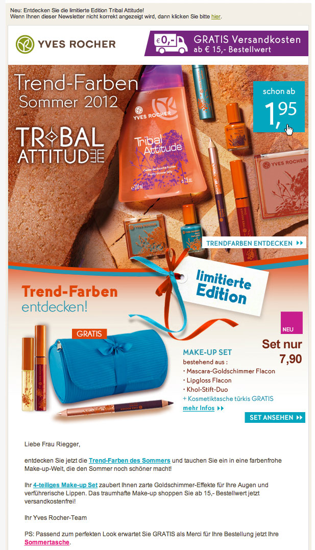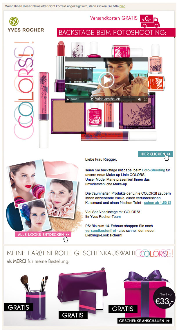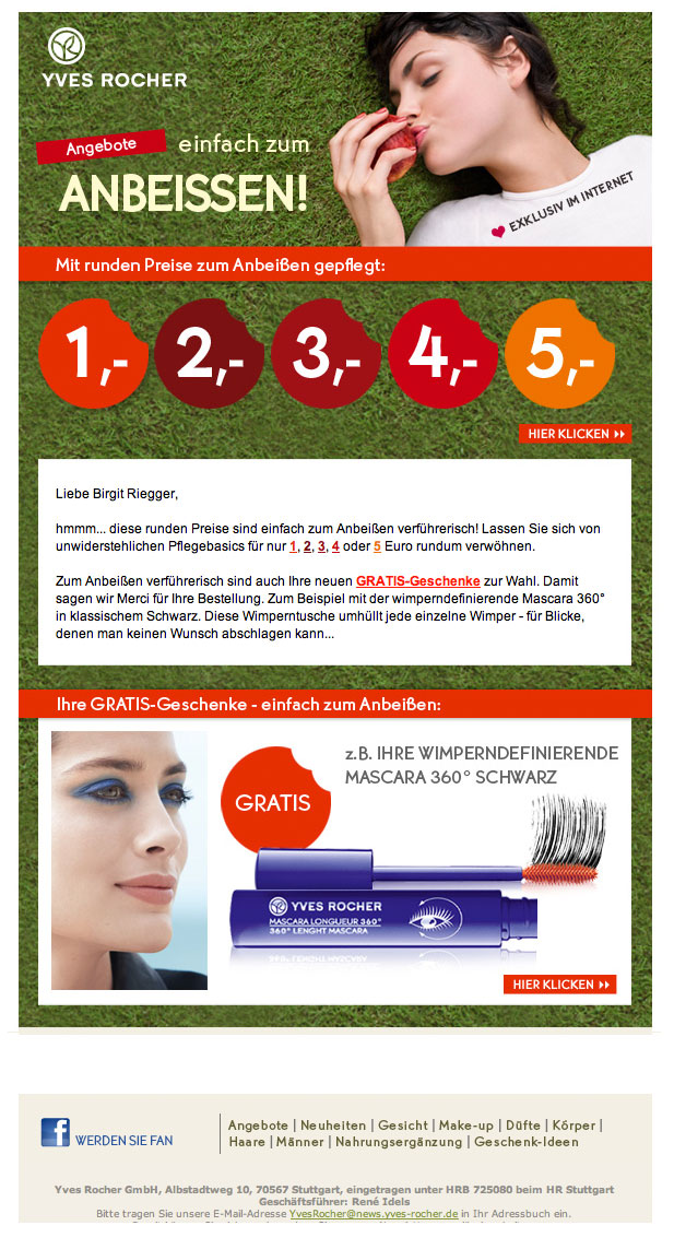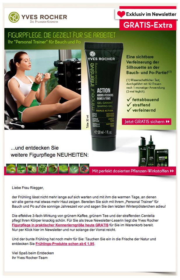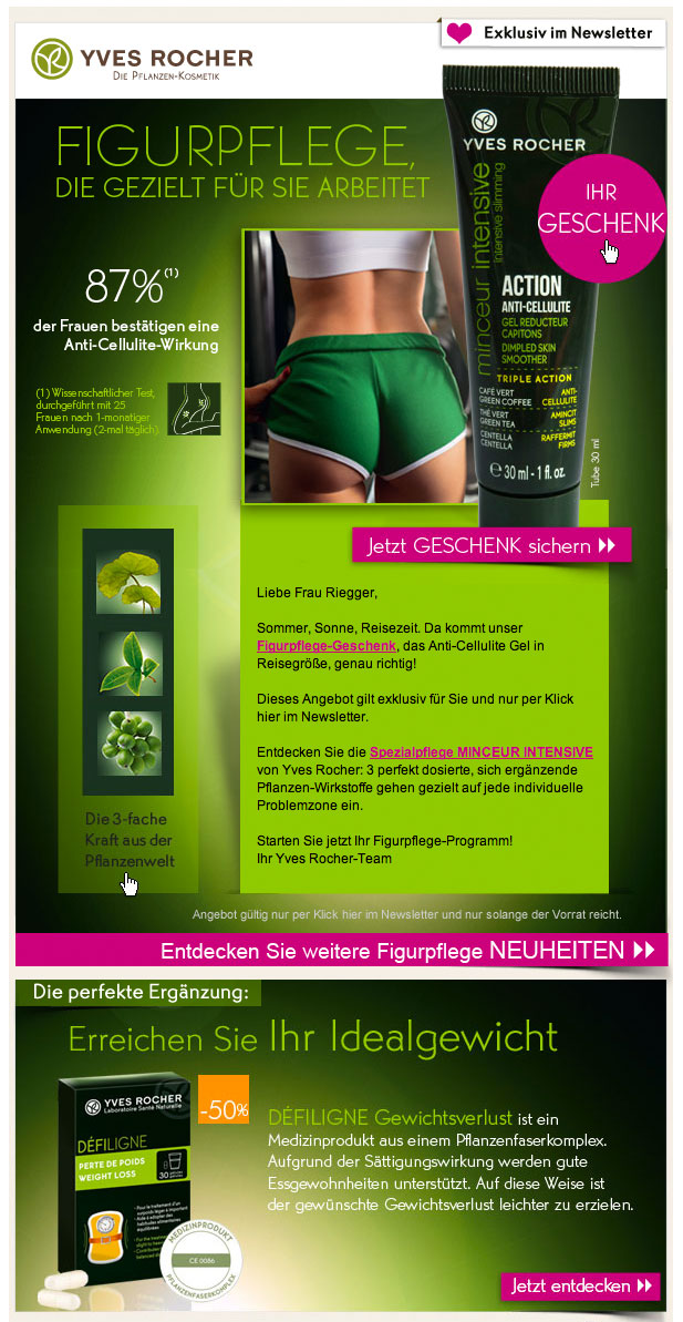 Von 1999 bis 2016 gestaltete farbdosis regelmäßig besondere und aufwändige Newsletter sowie Werbebanner für den großen Kosmetikhersteller Yves Rocher.
