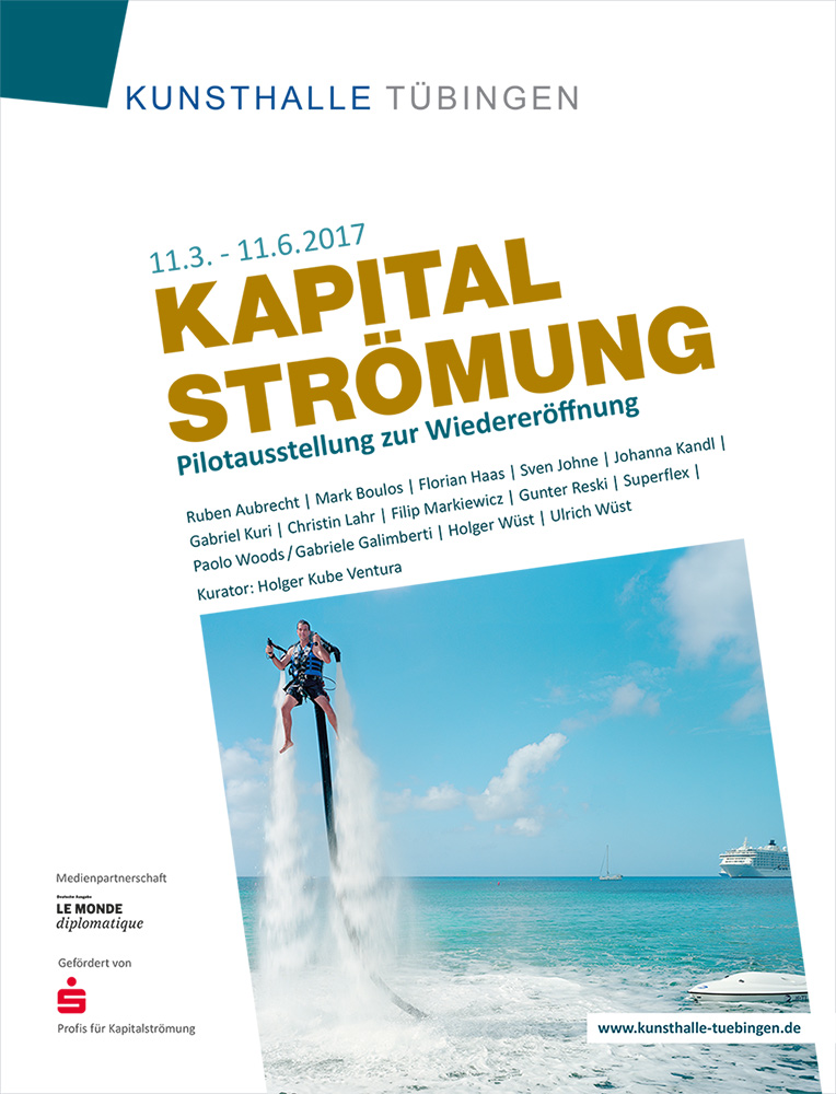 Am 10.März 2017 wird die Kunsthalle Tübingen mit der Pilotausstellung "Kapitalströmung" wiedereröffnet.