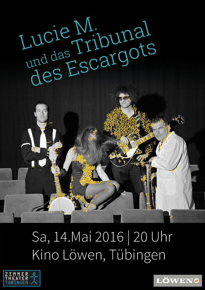 Für die Band Lucie M. und das Tribunal des Escargots um die Münchner Schauspielerin und Songwriterin Lucie Mackert gestaltete farbdosis das CD Cover als Digipack plus Booklet mit Songtexten und Fotos. Außerdem das Plakat und Flyer für die Konzertankündigung.