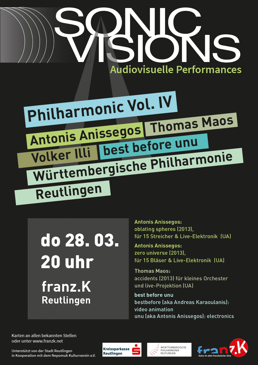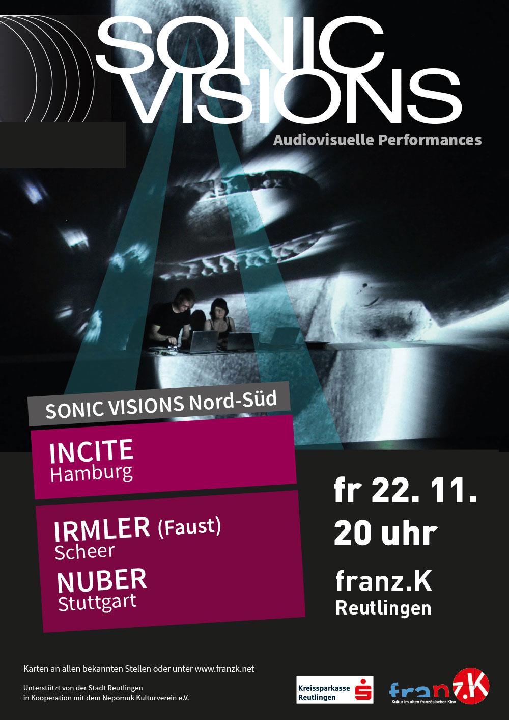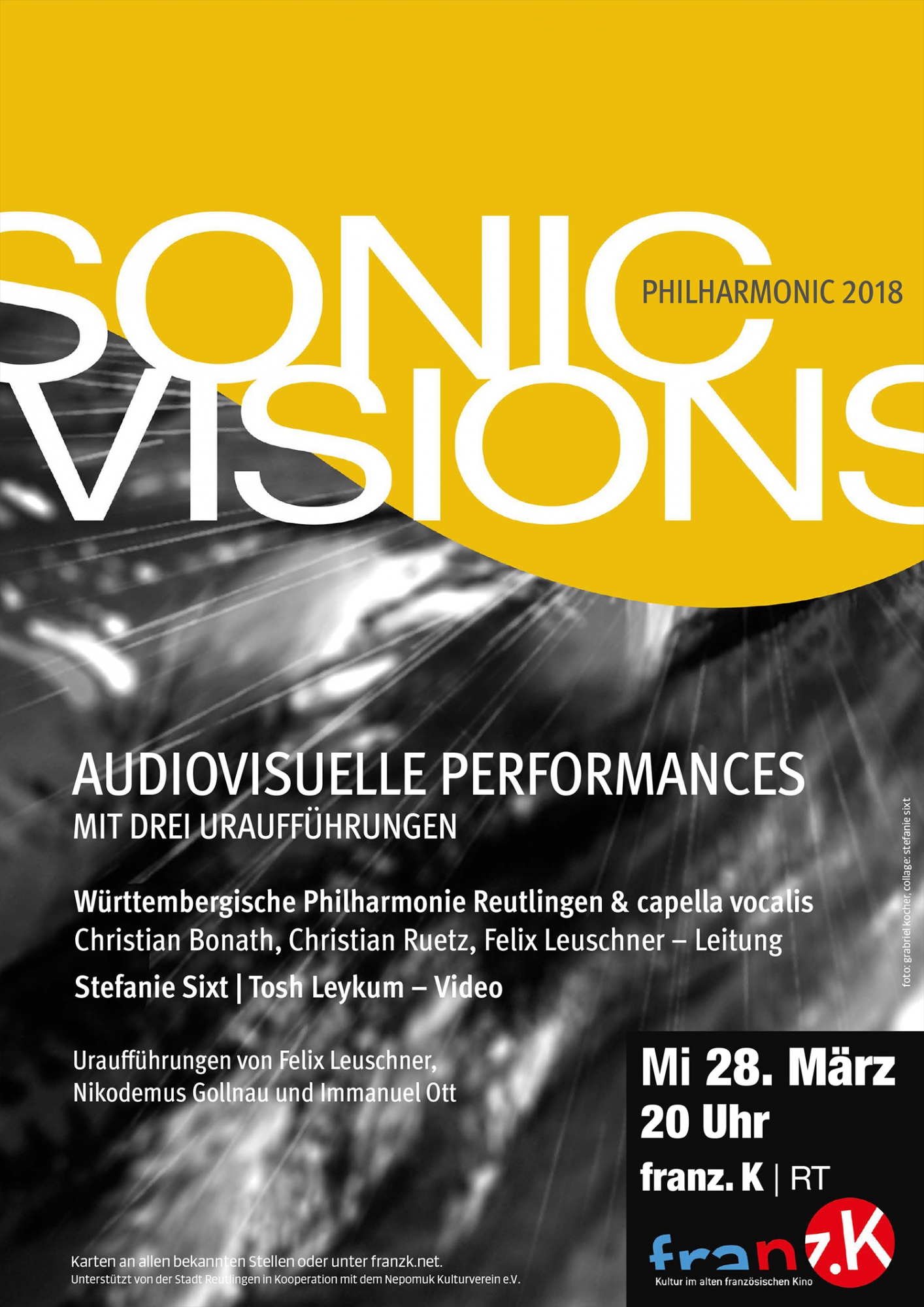 die Veranstaltungsreihe SONIC VISIONS ist ein einzigartiges Projekt des Kulturzentrums Franz.K in Reutlingen. Unter Mitwirkung der Württembergischen Philharmonie Reutlingen finden dort seit 2007 Uraufführungen internationaler Komponisten und audio-visueller Performance-Künstler statt.