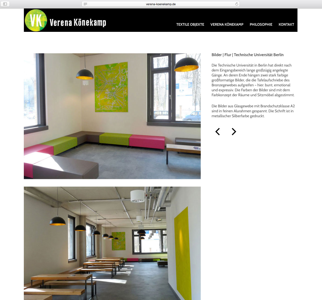 Für die Textil-Künstlerin gestaltete farbdosis einen responsiven Webauftritt, der ihr gesamtes Profil abbildet. Mit dem Content Management System Wordpress ist die Site einfach pflegbar.